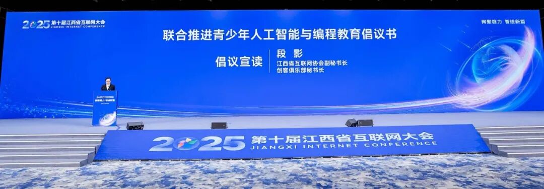 2025年12月5日,在2025(第十届)江西省互联网大会开幕式上,江西省互联网协会发起了联合推进青少年人工智能与编程教育倡议,呼吁共同构建一个“政、企、校、社”四位一体、协同推进的青少年AI与编程教育新生态。