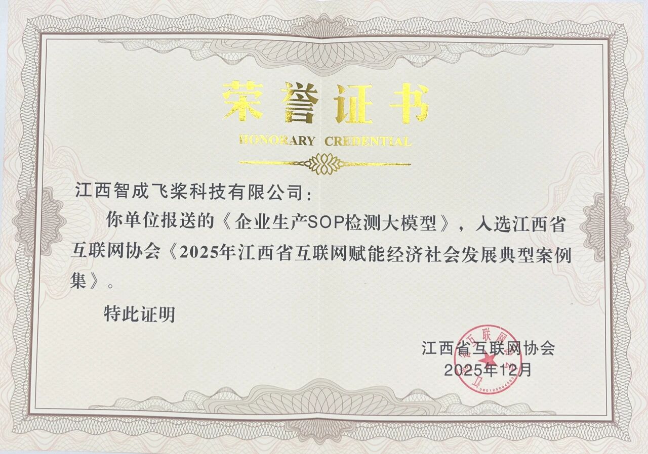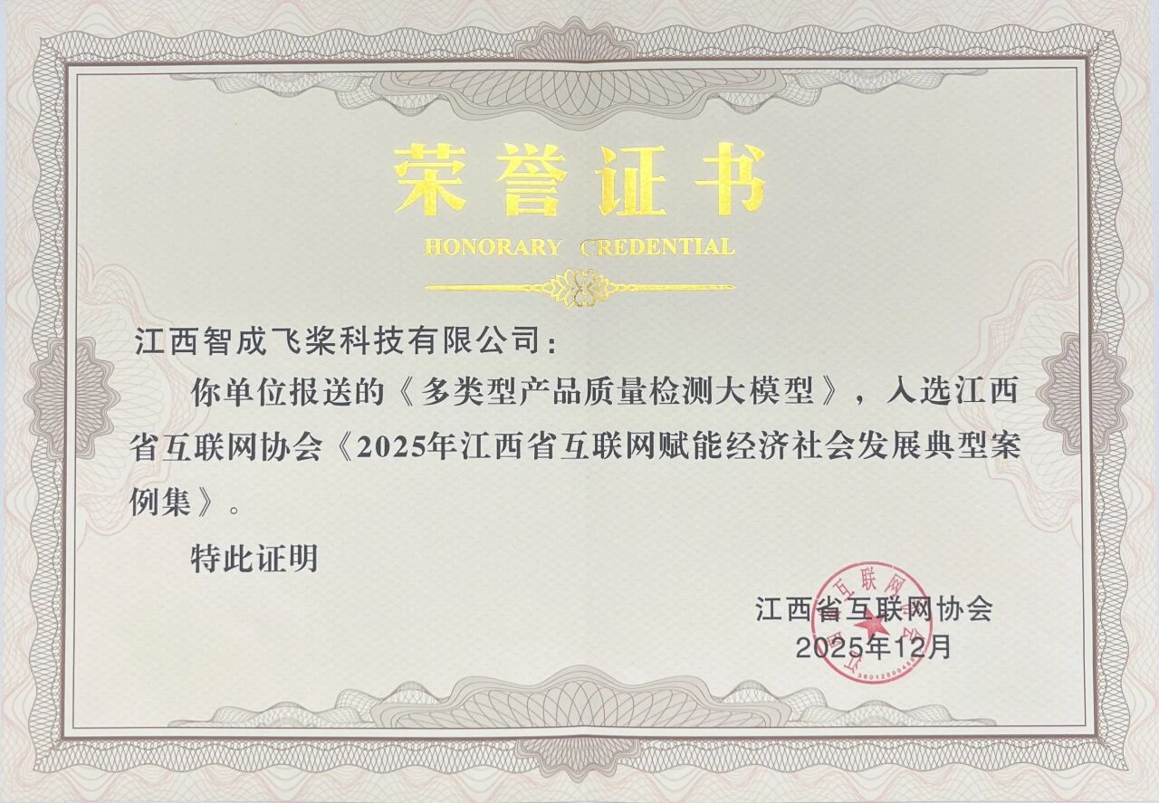 此次大会,江西智成飞桨科技有限公司携《企业生产SOP检测大模型》与《多类型产品质量检测大模型》亮相,二者均入选《2025年江西省互联网赋能经济社会发展典型案例集》,这一成绩充分印证了公司在智能制造领域的技术实力与实践价值。
