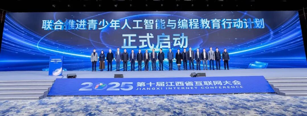 2025年12月5日,在2025(第十届)江西省互联网大会开幕式上,江西省互联网协会发起了联合推进青少年人工智能与编程教育倡议,呼吁共同构建一个“政、企、校、社”四位一体、协同推进的青少年AI与编程教育新生态。